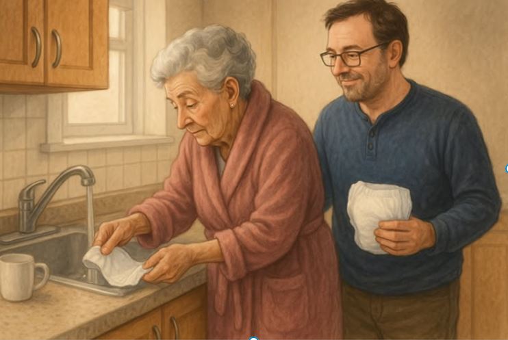 Elle ne voit plus la différence entre du linge et du jetable. Mais elle voit encore ce qu’est la fierté. La pudeur. L’envie de rester propre. D’être une femme qui se respecte, même quand la mémoire flanche.